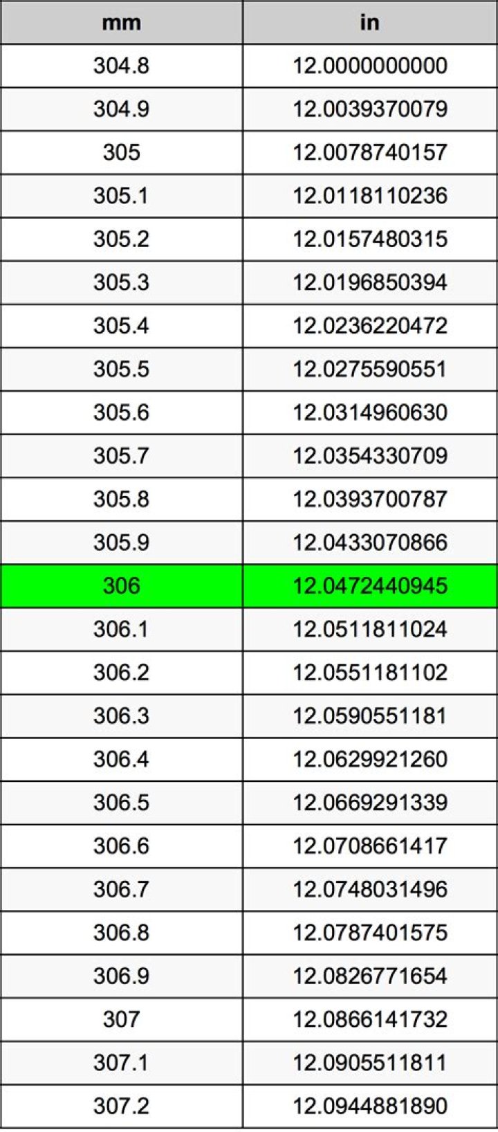 306 Millimeters To Inches Converter