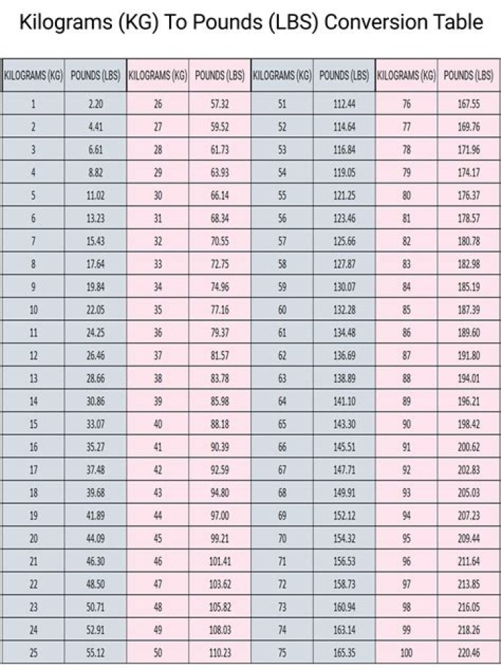 | Kilograms | Pounds |