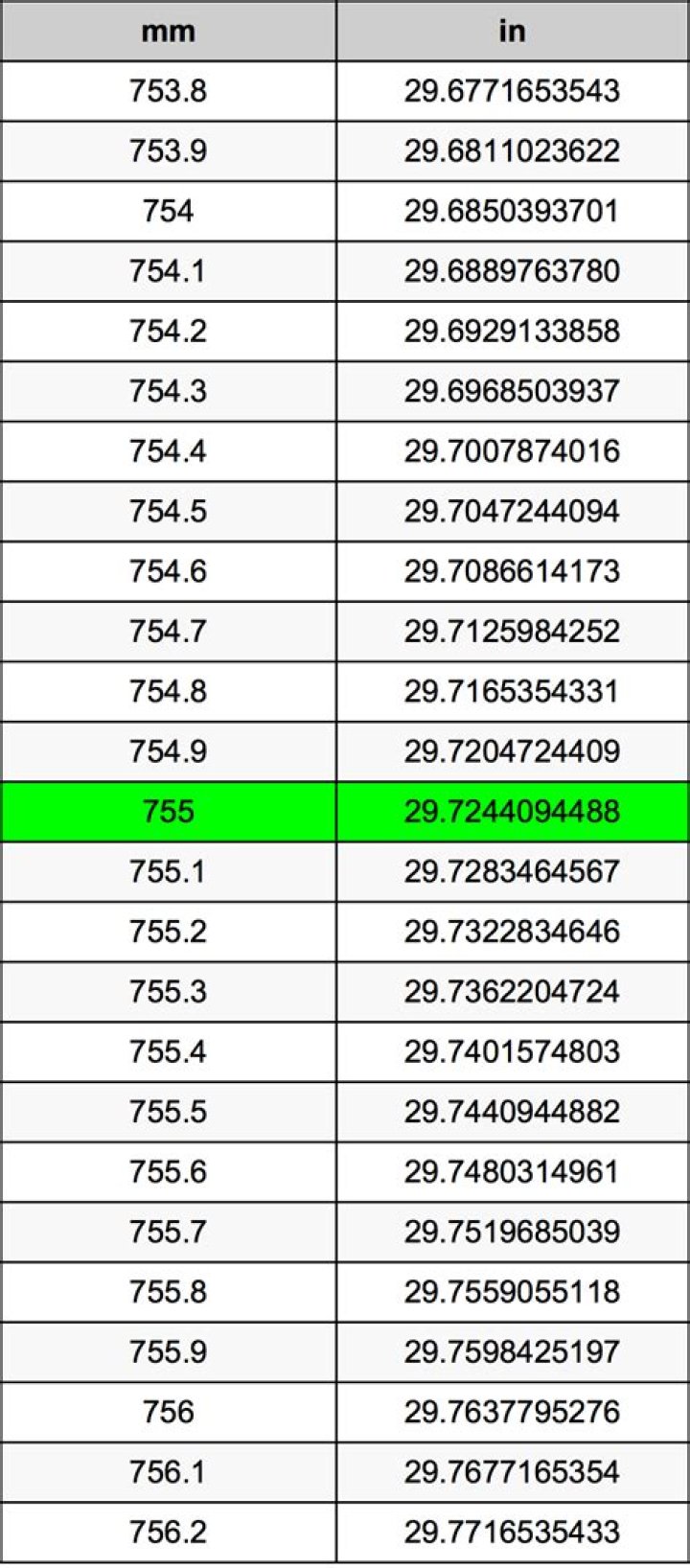 What is 755 millimeters in in?