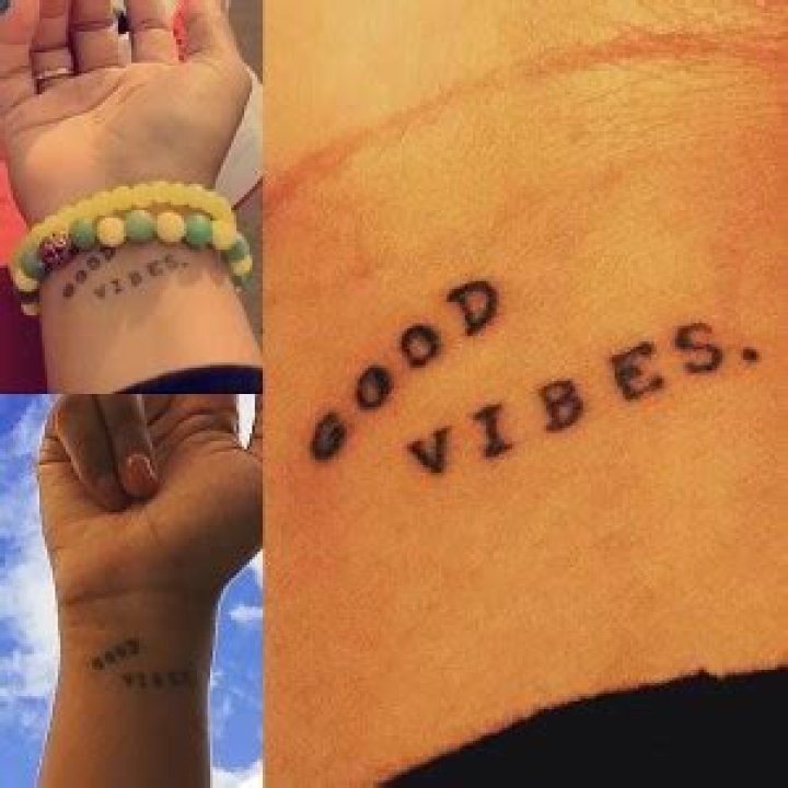 Dej Loaf got this “GOOD VIBES.” tattoo on her right wrist in 2015. It is a reminder to stay positive. “Got it to remind myself every day to keep my good vibes flowing,” she writes.