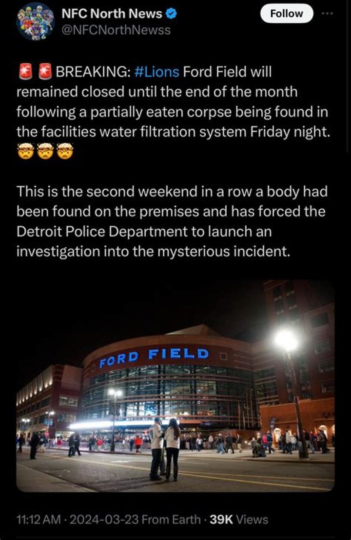 The "Ford Field corpse found" incident serves as a stark reminder of the importance of robust security measures and effective safety protocols in large venues. While the investigation continues, it is crucial for stakeholders to work together to address the concerns raised by this event and implement necessary improvements.