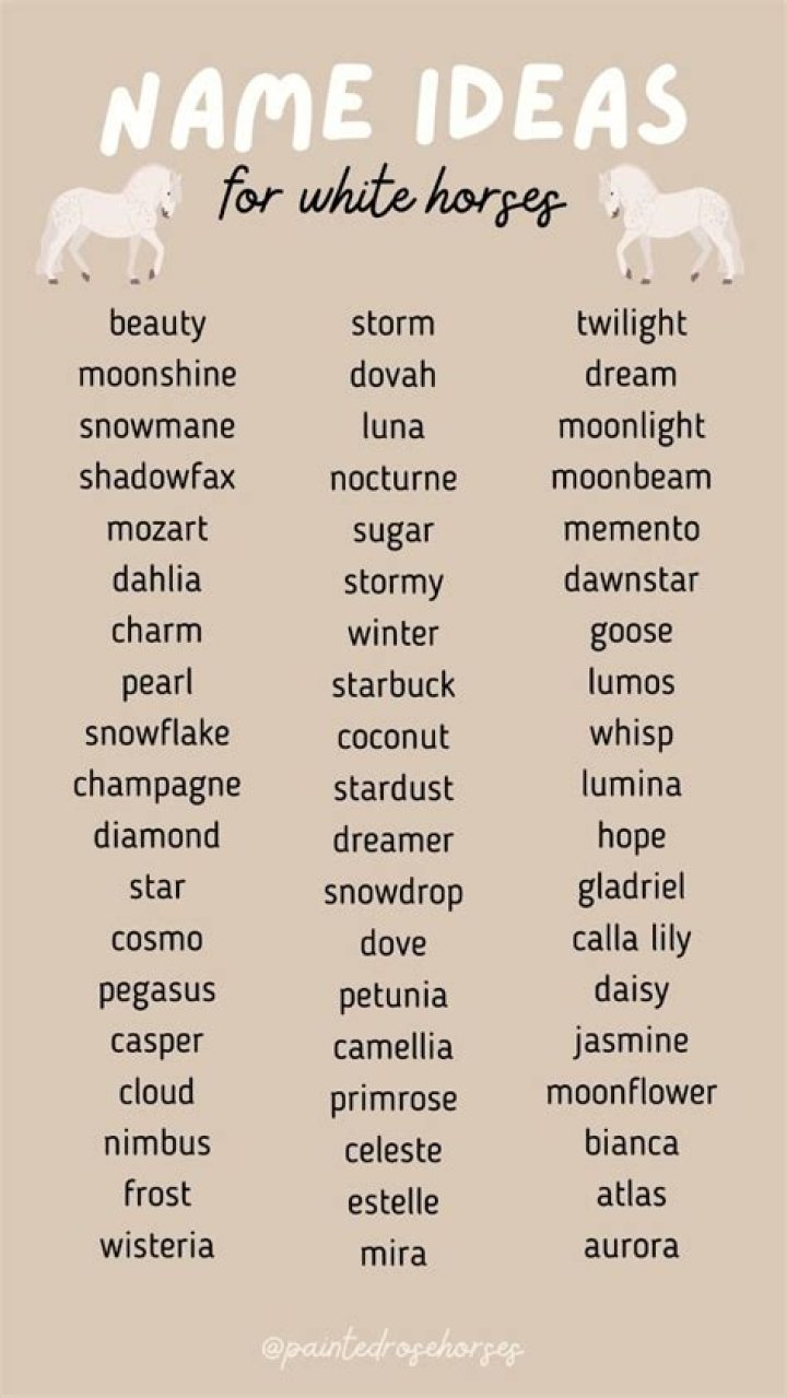 Here’s a list of popular and timeless names that are perfect for white horses:
