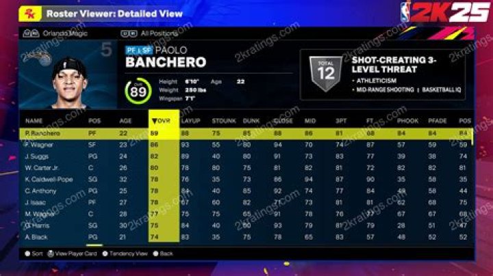 Banchero's potential is reflected in his high 2K25 rating. His overall rating is likely to be one of the highest in the game, and he is likely to be one of the most sought-after players in MyCareer mode. Banchero has the potential to be a star in the NBA, and his 2K25 rating is a reflection of that.