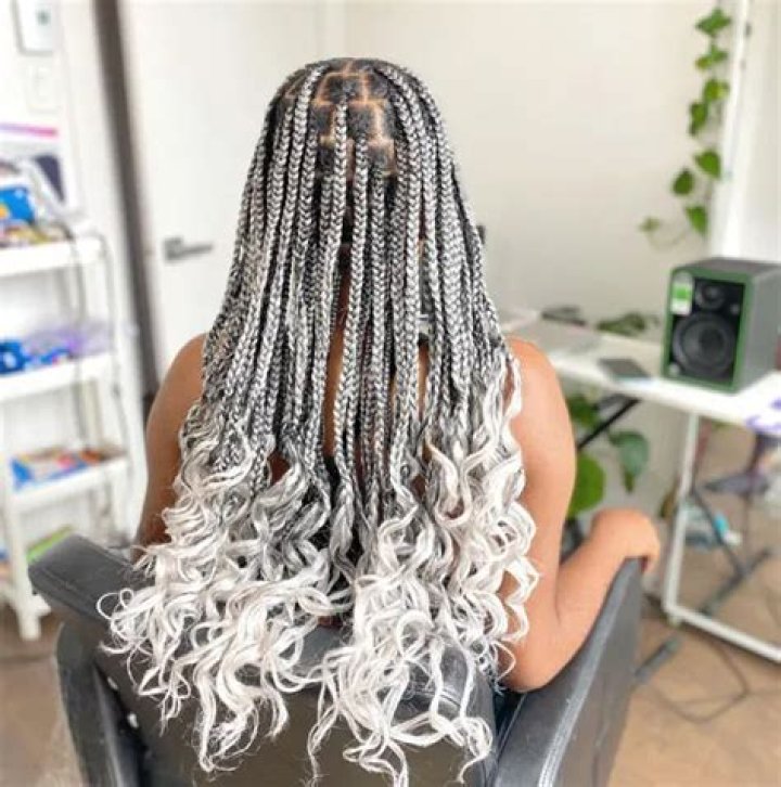 Ombre silver box braids gradually transition from dark roots to light tips, creating a stunning gradient effect. This style is perfect for adding depth and dimension to your look.