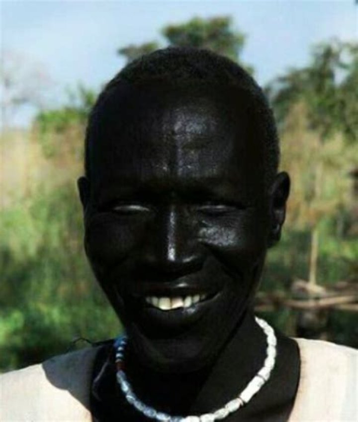 - Skin color: A man with very dark skin.